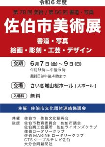 美術・書道・写真の愛好者の作品発表の場となる公募美術展です。 佐伯市所蔵の絵画5点も展示いたします。 皆様の御来場をお待ちしています。 会期:令和6年6月7日(金曜日)~6月9日(日曜日) 午前9時~午後5 […]