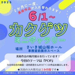 桜ホール内に展示している【カクゲツ・ミニギャラリー】の作品が入れ替わります。 スペースの関係上、多くの作品を展示することはできませんが、2か月間じっくりと作品を味わうことができます。 6月1日~7月末までの […]
