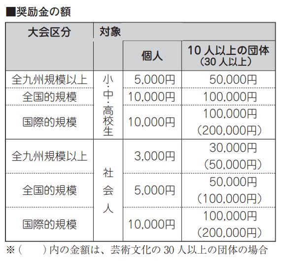 文化芸術の分野で九州大会や全国大会などに出場する人や団体に奨励金を交付します。