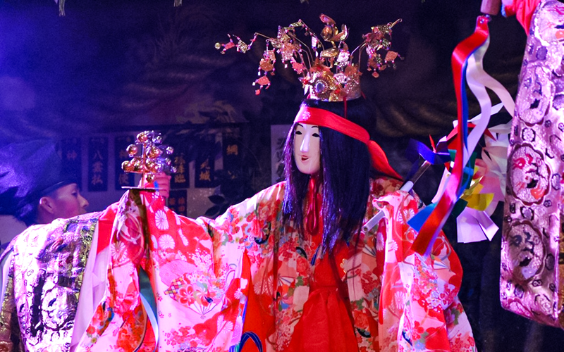 重岡岩戸神楽 2025年8月25日 最終更新日時 : 2025年12月23日 mst-design アイコンリンク 重岡岩戸神楽 Shigeoka-Iwato-Kagura 文化芸術団体 伝統芸能 地域の伝統芸能及び民俗芸能 文化財 佐伯市内全域 市外 県指定無形民俗文化財 大正11年に設立され、「伏野神楽」から昭和30年に「重岡岩戸神楽保存会」へ、令和7年からは「重岡岩戸神楽」へ名称を改め、大分県指定無形民俗文化財として一度も途絶えることなく保存継承されています。県内外のイベントや地域の様々な行事、地域の氏神様のお祭りや厄除祈願等において神楽を奉納しています。 GALLERY ギャラリー 設立年月日大正11年所属人数18名講師対応可能代表者吉良 和起