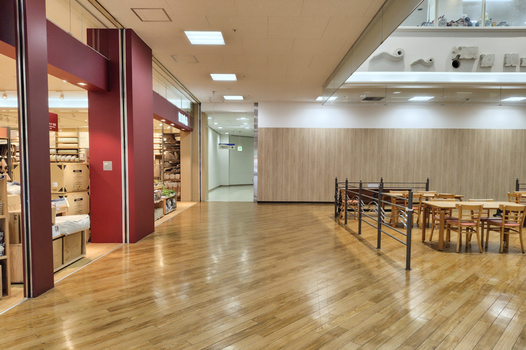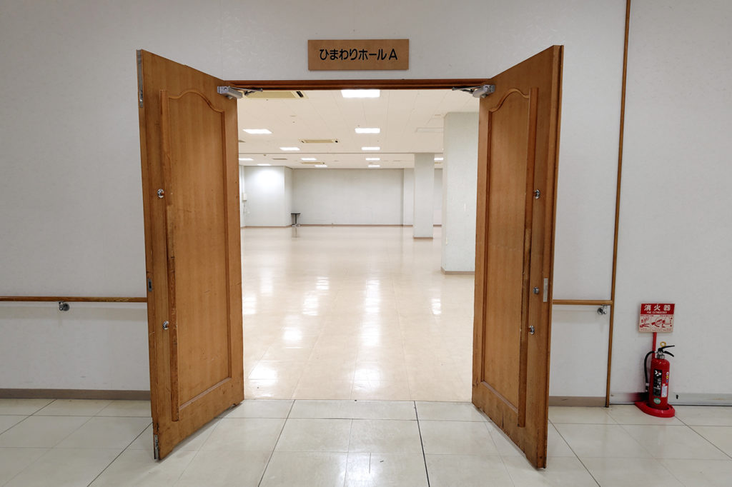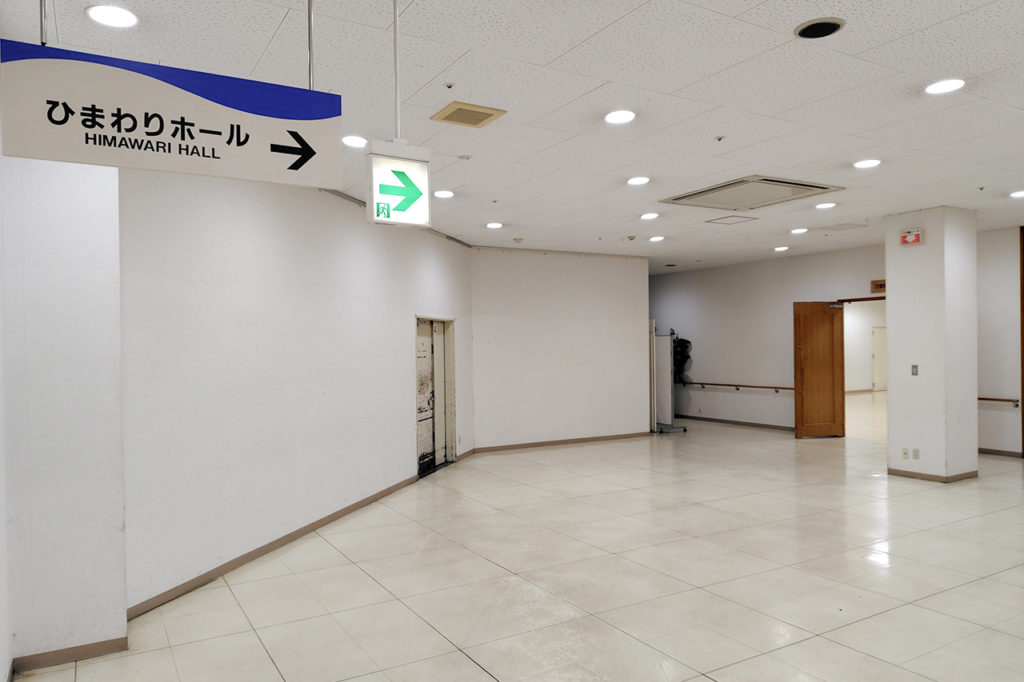 無印良品と休憩スペース(フードコート)の間の通路奥にひまわりホールがあります。